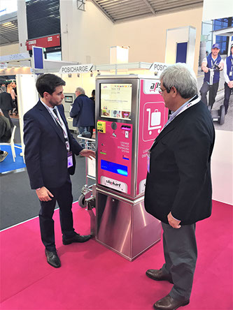 Currently, at the International Terminal, the Luggage Trolley Dispenser System, is composed by five high-tech dispensers. Two of them are located at the arrivals, another 2 at the departures and the last one is outside of the terminal. vat inter airport Europe 2017 in Munich, 10th - 13th October