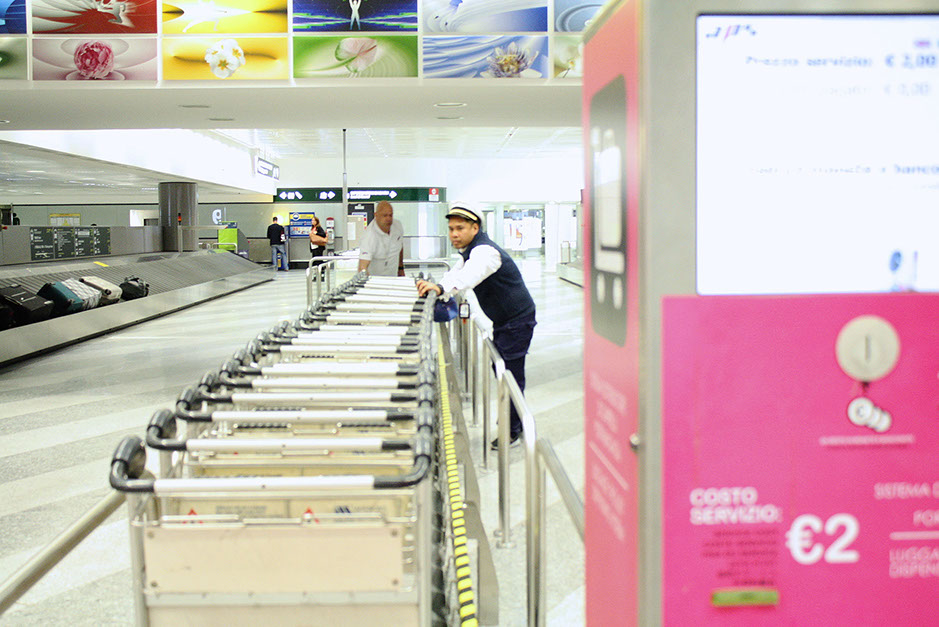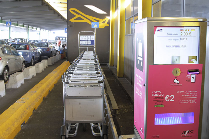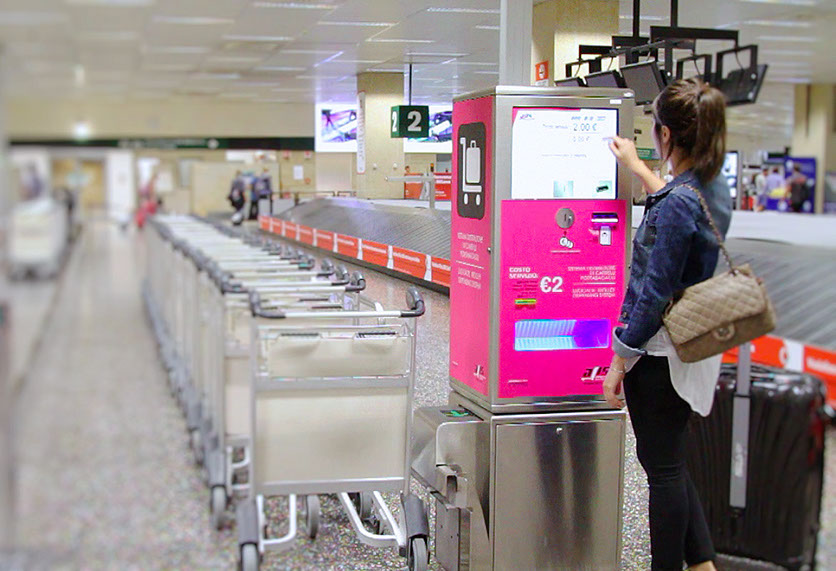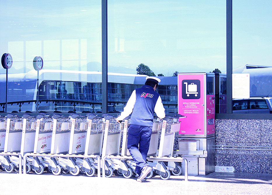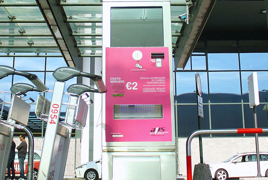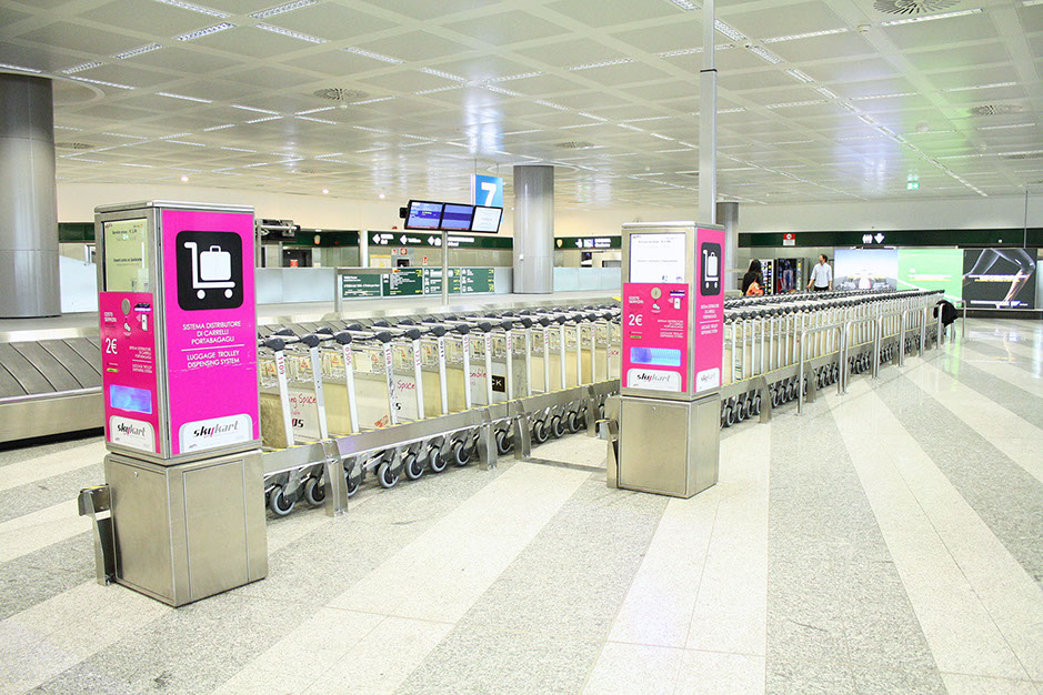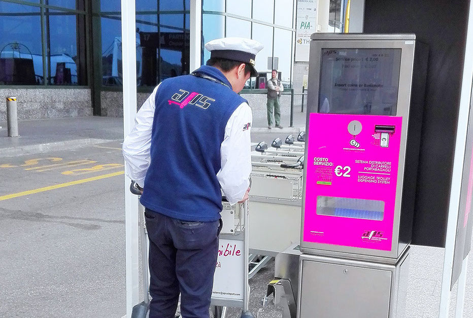 The automatic baggage trolley dispensing units serve two purposes: