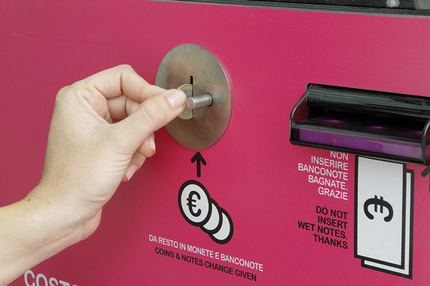 - The user must introduce the correct rental or deposit amount in coins or notes (depending on dispensing model).